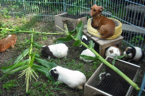 まずは大風で倒れたトウモロコシの食べ放題だよ。