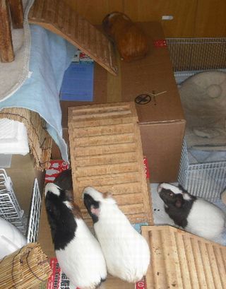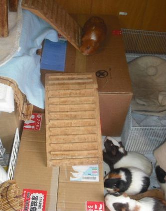 (ダンボールと木の階段)をオルチャ♀が2つ 上った。そうなると