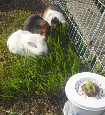 暖かい庭で4日ぶりに大麦やエンバクを食べたの。 by ココチャ♀