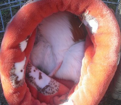 チャメー♀に着せた靴下利用のホウタイをママ・ルビーニにも作って