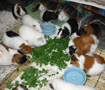 クローバーを摘んで「せめてこれでも」と食べてもらいました。