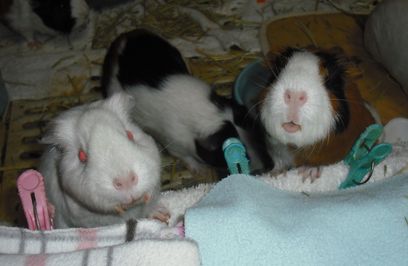 (左端)姉組 チェッカ♀ (白モル)妹組 ミーク♀ (手前3色)タムタム