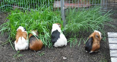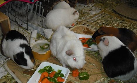 可哀そうで野菜を切ってチモシーの上に置いたら、群れました。