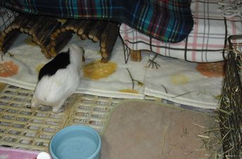 小屋の下を汚さないようペットシート+広告紙+上敷きと敷き詰めて