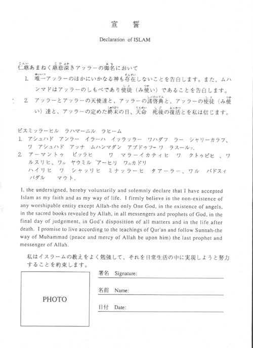 ((イスラミクセンター入信証明書2ページ目))