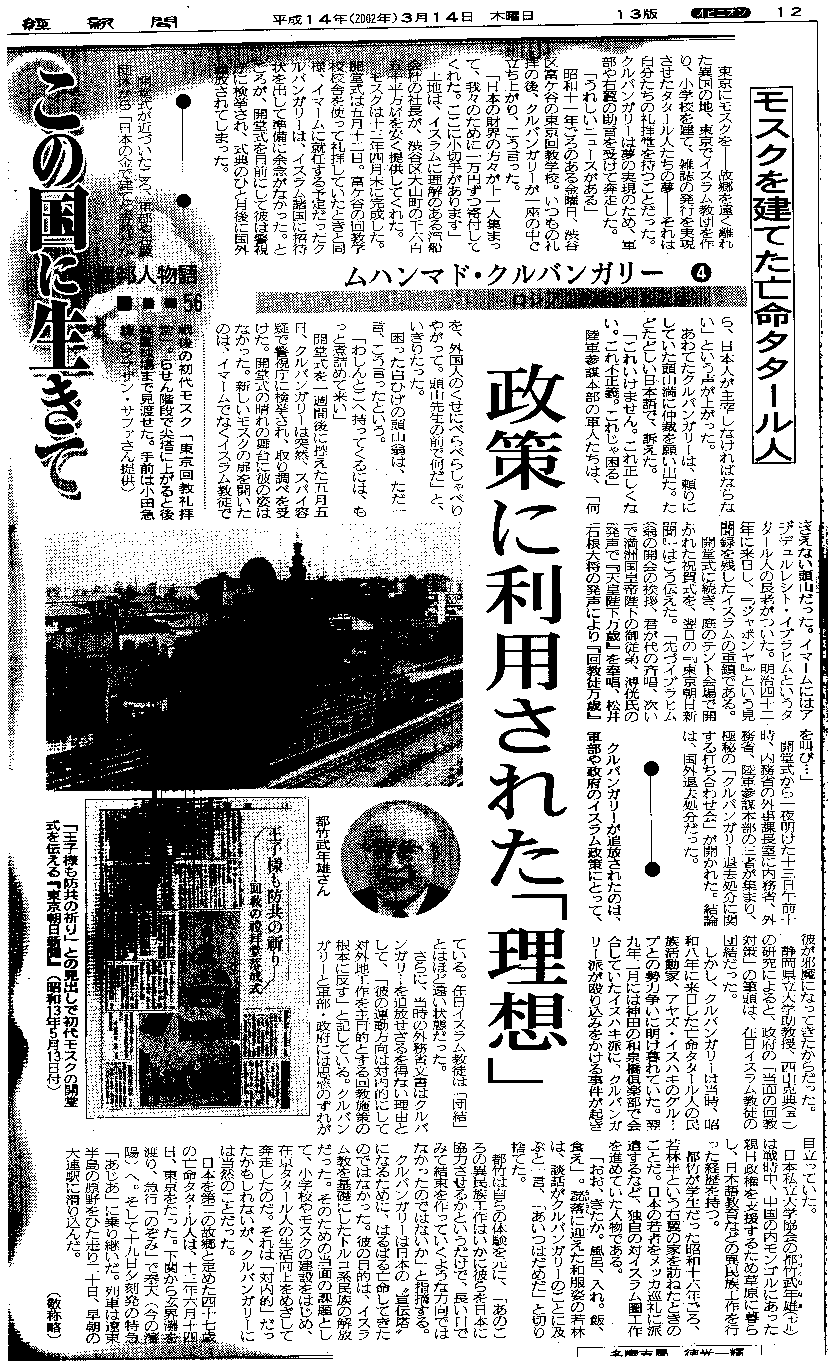 | 開堂式が近づいたころ、軍部や右翼団体から「日本の金で建てた寺院だから、日本人が主宰しなければならない」という声が上がった。 あわてたクルバンガリーは、頼りにしていた頭山満に仲裁を願い出た。たどたどしい日本語で、訴えた。 「これいけません。これ正しくない。これ不正義。これじゃ困る」 陸軍参謀本部の軍人たちは、「何を、外国人のくせにべらべらしゃべりやがって。頭山先生の前で何だ」と、いきりたてた。 困った白ひげの頭山翁は、ただ一言、こう言ったという。 「わしんとこへ持ってくるには、もっと煮詰めて来い」 開堂式を一週間後に控えた五月五日、クルバンガリーは突然、スパイ容疑で警視庁に検挙され、取り調べを受けた。開堂式の晴れの舞台に彼の姿はなかった。新しいモスクの扉を開いたのは、イマームでなくイスラム教徒でさえない頭山だった。イマームにはアブデュルレシト・イブラヒムというタタール人の長老がついた。明治四十二年に来日し、『ジャポンヤ』という見聞録を残したイスラムの重鎮である。 開堂式に続き、庭のテント会場で開かれた祝賀式を、翌日の『東京朝日新聞』はこう伝えた。「先ずイブラヒム翁の開会の挨拶、君が代斉唱、次いで満州国皇帝陛下の御従弟、溥洸氏の発声で『天皇陛下万歳』を奉唱、松井石根大将の発声により『回教徒万歳』を叫び・・・・・・・」 開堂式から一夜明けた十三日午前十時、内務省の外事課長室に内務省、外務省、陸軍参謀本部の三者が集まり、極秘の「クルバンガリー退去処分に関する打ち合わせ会」が開かれた。結論は、国外退去処分だった。 クルバンガリーが追放されたのは、軍部や政府のイスラム政策にとって彼が邪魔になってきたからだ。 静岡県立大学助教授、西山克典(五一)の研究によると、政府の「当面の回教対策」の筆頭は、在日イスラム教徒の団結だった。 しかし、クルバンガリーは当時、昭和八年に来日した亡命タタール人の民族活動家、アヤズ・イスハキのグループとの勢力争いに明け暮れていた。翌九年二月には神田の和泉橋倶楽部で会合していたイスハキ派に、クルバンガリー派殴り込みをかける事件が起きている。在日イスラム教徒は団結とは程遠い状態だった。 さらに、当時の外務省文書はクルバンガリーを追放せざるを得ない理由として、「彼の運動方法は対内的ににして対外地工作を主目的とする回教施策の根本に反する」と記している。クルバンガリーと軍部・政府には思惑のずれが目立っていた。 日本私立大学協会の都竹武年雄(七九)は戦時中、中国の内モンゴルにあった親日政権を支援するため草原に暮らし、日本語教育などの異民族工作を行なった経歴を持つ。 都竹が学生だった昭和十六年ごろ、若林半という右翼の家を訪ねたときのことだ。日本の若者をメッカ巡礼に派遣するなど、独自のイスラム圏工作を進めていた人物である。 「おお、きたか。風呂、入れ。飯、食え」。磊落に迎えた和服姿の若林は、談話がクルバンガリーのことに及ぶと一言、「あいつはだめだ」と切り捨てた。 都竹は自らの体験を元に、「あのことの異民族工作はいかに彼らを日本に協力させるかというだけで、長い目でみて結束を作っていくもうな方向ではなかったのではないか」と指摘する。 クルバンガリーは日本の”宣伝塔”になるために、はるばる亡命してきたのではなかった。彼の目的は、イスラム教を基礎にしたトルコ系民族の解放だった。そのための当面の課題として、小学校やモスクの建設をはじめ、在京タタール人の生活向上をめざして奔走したのだった。それは「対内的」だったかもしれないが、クルバンガリーには当然のことだった。 日本を第二の故郷と定めた四十七歳の亡命タタール人は、十三年六月十四日、東京をたった。下関から玄海灘を渡り、急行「のぞみ」で奉天(今の藩陽)へ。そして十九日夕刻発の特急「あじあ」に乗り継いだ。列車は遼東半島の原野をひた走り二十日、早朝の大連駅に滑り込んだ。 (敬称略) |