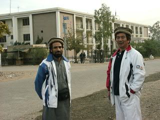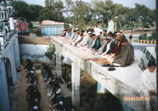 A氏がイスラマバードからペシャワールへ戻る途中に寄った、高速道路脇のモスクでの金曜礼拝。ここでA氏一句『車停め 祈り捧げる 道路脇』 あぶとヤーセル氏は、ペシャワルの配給所の前のマスジドでパシュトゥ語の長〜いフトバ(説教)を聞き、あぶは、第1列ハティーブ(説教する人)の目前で居眠りの失態。金曜礼拝の後、配給所に帰れば、その時のイマームがやって来た。流暢なアラビア語がしゃべれる人で、二人で話しをした。なぜウルドゥ語ではなくパシュトゥ語でフトバをするのか?とか・・・・この地域に住むアフガン難民の生活状況とか聞いてみた。 |