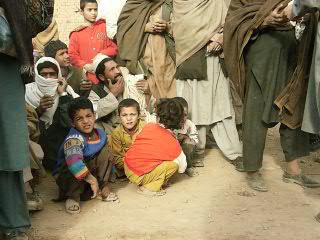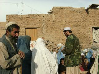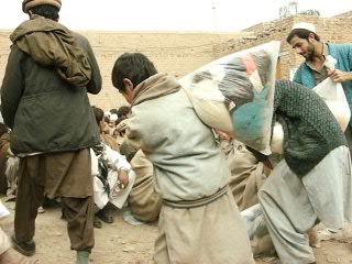 配布の最中もアメリカ軍のヘリコプターが忙しくアフガンに向けて飛んで行く。祖国が爆撃されている難民の心境はいかがなものだろう。 | |