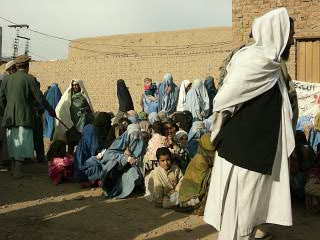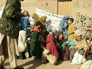食糧配給予定時間が来た。イスラマバードの工場からトラックは出たが、警察に止められたとのニュースが入ってきた。門の外には昨夜クーポンを手にした1000世帯の難民が押し寄せてきた。困った。どうしてこうなるのだ。 | |