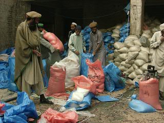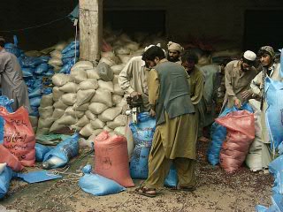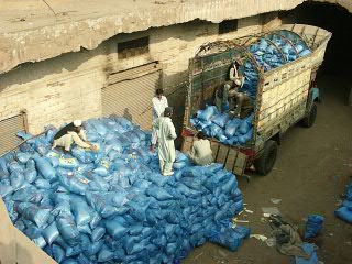 ペシャワルでのファミリーパック作成は、徹夜作業で順調に進んだ。一応心配になり袋詰め作業を見に行った。 |