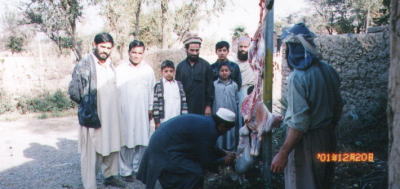 ということでやぎ君は、てばやく捌かれた。ヤーセルさんと近所の集まった人たち、アフガン難民の人たちも見える。 | |