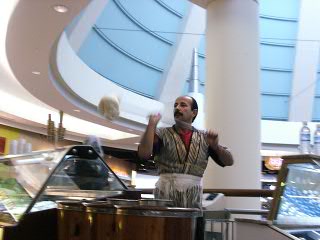 | トルコ娘が英語で応えます(左) | 望めば出来立てホヤホヤのアイスをのせてくれます |