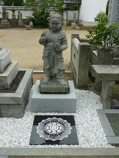 不動霊場開創25周年記念として当山にも童子様が建立されていますが、この程その御前に蓮華座を据えました。この蓮華座に立つと、貴方はもう佛様と一体です。童子様を拝まれる場合は必ず蓮華座の上に立ち、童子様を撫でながら御祈念下さい。素晴らしい御利益を頂くはずです。  合掌