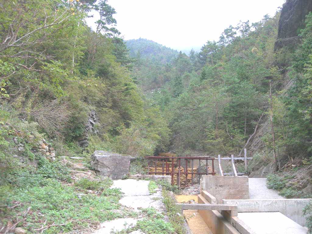 この谷の上部石垣の上に東延斜坑があり、この辺りには、選鉱場があった。
