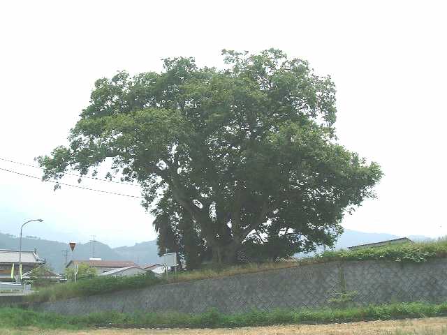 西条市名水・名木50選 玉津のむく 渦井河の玉津橋北側に位置するむくの大木。 目通り周り約四メートル、高さ約二十五メートルと大きく、玉津地区の目印になる木です。 天気が良いときは、石鎚山からも確認できます。 平成三年三月選定 |