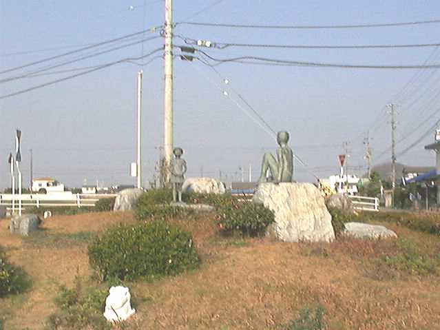 の近く、生子橋の前のモニュメント。