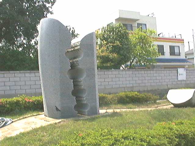 未来を創出する新居浜市民のエネルギーを双葉が天空に伸びてゆくイメージで表現し、優しさと明快なフォルムを御影石によって追及した。