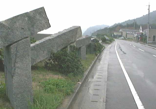 市役所通り(壬生川新居浜野田線)を東に進み、黒島付近を過ぎて海が見え始めるあたりにあるモニュメント。