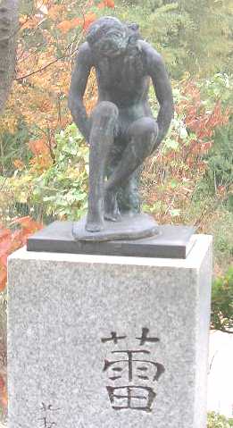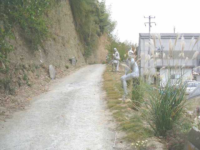 に続く道の傍らには、多くの彫刻が並んでいる。
