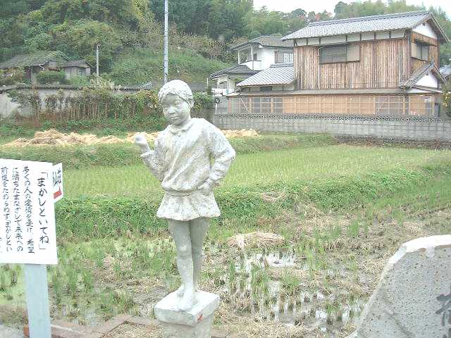 多くの人の愛情を受け、希望に満ちたまなざしで未来への前進をためらわず「まかしといてね」と答えている少女像です。