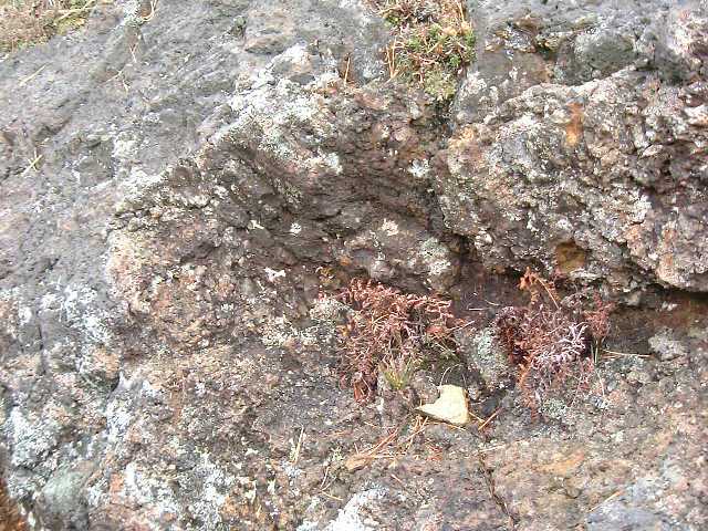 牛車道の途中で銅鉱石の露頭が確認できる。