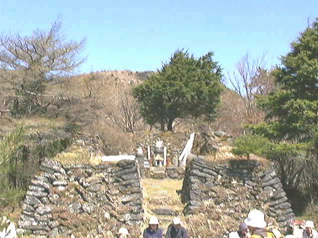 旧別子案内 No 20 元禄時代の古い坑道の跡で、人一人がやっと通れる位のせまいものである。 元禄8年(1695)、ここと立川銅山(別子開坑の60年位前から稼働していた嶺北角石原側の銅山で、当時西条領であった)の大黒間符が偶然に貫通し、境界争いとなって紛糾した。 のち、立川銅山は経営不振から、宝暦12年(1762)になって別子銅山に吸収合併され、住友家の経営に移った。ここから牛車道に沿ってしばらくの間は、道の山側に銅の露頭が表れている。 牛車道を別れて西へ、沢をつめる小道は笹ヶ峰への縦走路である。 |